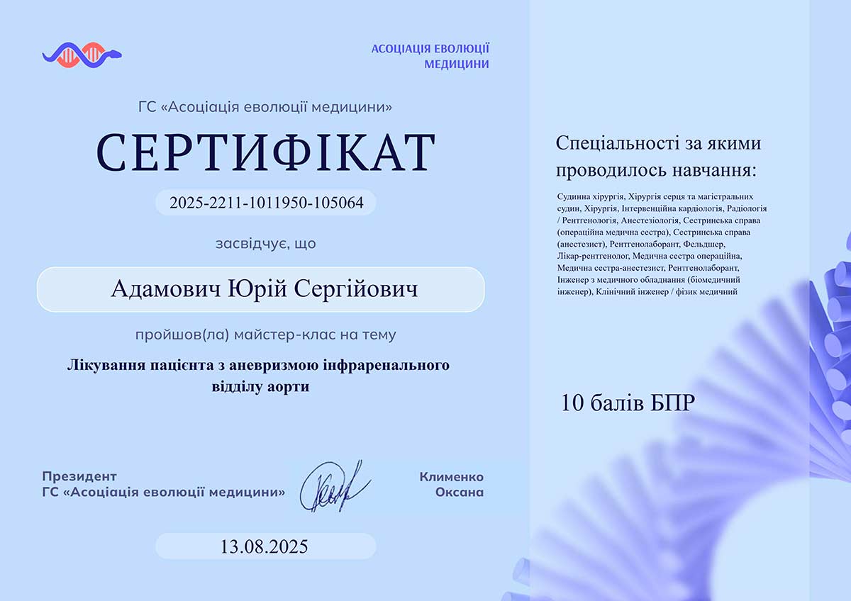 - Лікування пацієнтів з аневризмою інфраренального відділу аорти (2025)