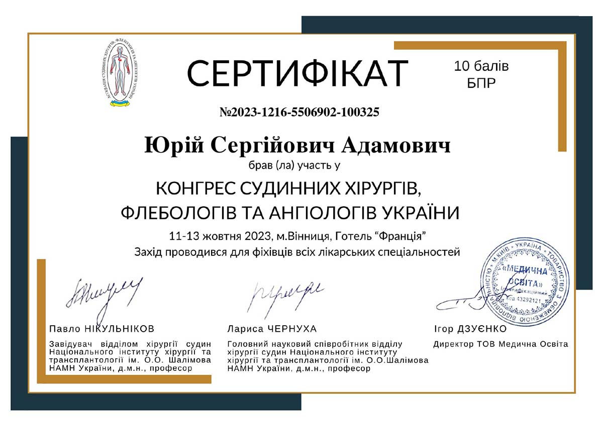 - КОНГРЕС СУДИННИХ ХІРУРГІВ, ФЛЕБОЛОГІВ ТА АНГІОЛОГІВ УКРАЇНИ