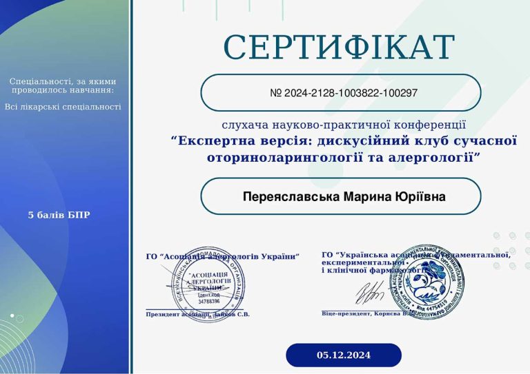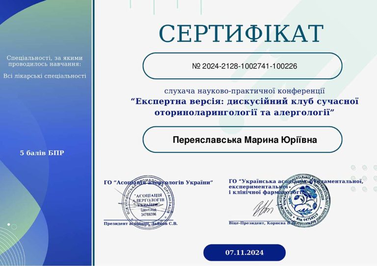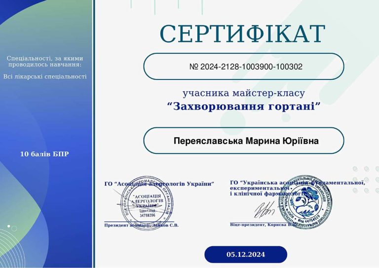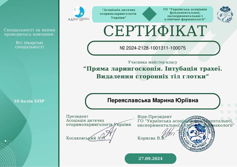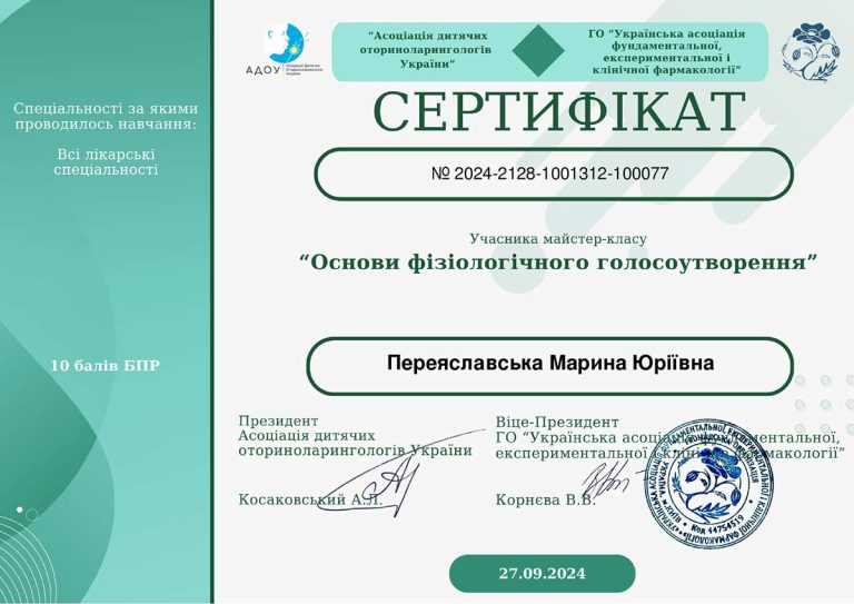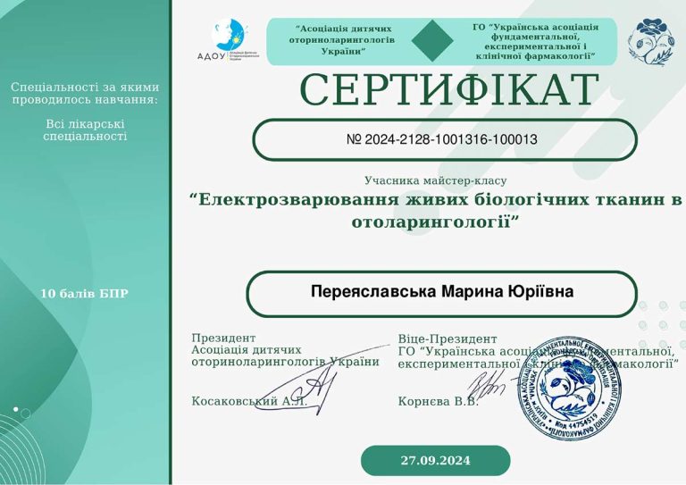 - НМАПО ім. П.Л.Шупика (спецальність «Отоларингологія»)