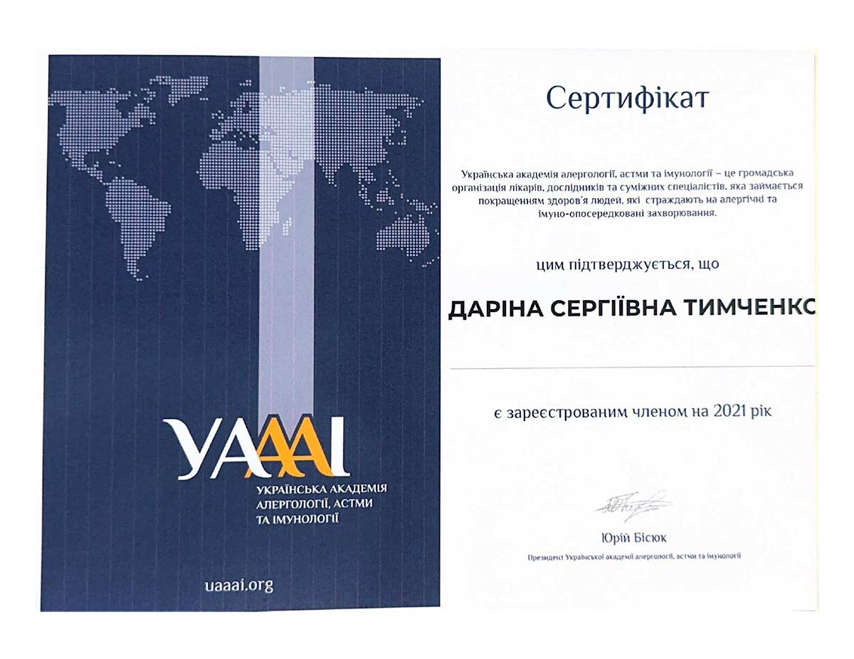 - Член Української Академії Алергології та Імунології
