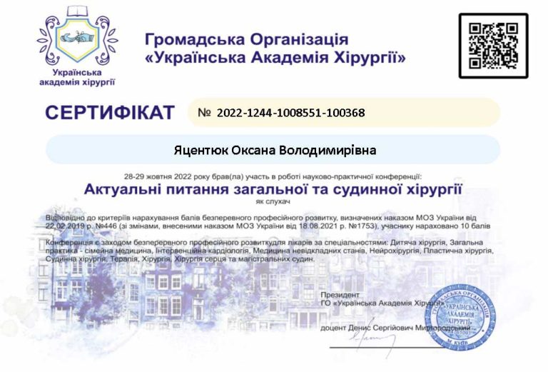 - ТУ «Невідкладні стани в практиці лікаря» (НМАПО ім. П.Л.Шупика)